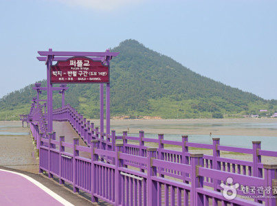 퍼플교는 신안군 안좌면 박지마을에서 평생 살아온 할머니의 소망이 담겨있는 다리이다. 할머니의 간절한 소원은 살아생전 박지도 섬에서 목포까지 두 발로 걸어가는 것이었다. 이후 2007년 신활력 사업으로 목교가 조성되었으며 반월, 박지도가 보라색 꽃과 농작물이 풍성한 사계절 꽃피는 1004 섬의 의미로 퍼플교로 불리게 되었다. 다리 중간에는 휴식을 취할 수 있는 팔각정과 낚시를 할 수 있는 공간도 있다. 밤이 되면 소망의 다리는 더욱 빛이 난다. 암흑이 드리워진 곳에 퍼플교만의 환한 불빛이 비추고, 다리 아래로는 바닷물이 가득 차 있다.