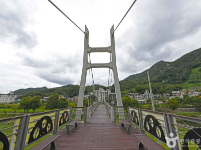 출렁다리의 정식 명칭은 등선교이다. 출렁다리는 보행만 가능한 관광형이며 폭 2M, 길이 58M이다. 출렁다리 양 끝에는 추억광장과 공원이 조성되어 있다. 추억 광장에는 예전 강촌 출렁다리 사진과 과거 대학생들로 붐빈 강촌의 번영을 재현한다는 뜻의 조형물이 전시되어 있다. 강촌 출렁다리 공원을 거닐 때 자신의 추억을 떠올리기 적절한 곡을 들으며 길을 걷는 것도 나쁘지 않다. 더욱이 사랑하는 사람과 함께 옛이야기를 도란도란 나누며 거닐다 보면 어느새 다리를 다 건너가 있을 것이다. 그리고 예전의 출렁다리와 현재의 출렁다리가 어떻게 달라졌는지, 주변 경관은 또 어떻게 다른지 비교하며 걷는 것도 하나의 재미이다.
