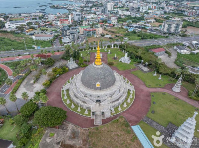 평화통일 불사리탑은 반구형으로 건립한 불교사원으로 1998년 8월 15일 완공되었다. 조선시대의 억불정책에 맞서 불교중흥을 위해 헌신하다가 제주도로 유배된 허응당 보우대사와 환성 지안대사의 전법 정신을 이어 조국 통일과 세계평화를 염원하며 세운 사찰이다. 탑은 민족의 영산 백두의 천지에 정방향으로 맞추어 건축했고 한라산과 백두산이 불사리탑을 축으로 서로 일직선상에 놓이도록 했다. 불사리탑의 높이는 33M로 이것은 불교에서 말하는 천상세계 삼십삼천을 상징하는데 1층은 둥근 우주의 완전한 평화와 행복, 2층은 깨달음과 열반으로 이끄는 올바른 여덟 가지 길, 3층은 108번뇌를 상징한다.