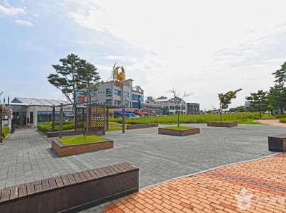 비치조각공원은 새천년해안도로변의 주요 볼거리 중의 하나이다. 여름철은 물론 4계절 관광객이 찾아와 조각 작품을 감상하면서 휴식 및 더위를 식히는 장소로 인기를 높다. 울창한 소나무 숲을 올라가면 휴식을 취할 수 있는 팔각 정자가 나온다. 정자에서는 푸른 바다 전망이 한눈에 보이고 해안가 기암괴석 위에 만들어진 새천년도로가 잘 보인다. 해안가 쪽에 있는 작은 공영장에서는 종종 공연도 진행한다. 특히 지하공간에 있는 ‘카페 마린데크’는 바다와 가장 가까이에서 차나 음료를 마실 수 있는 가장 아름다운 데이트 장소로도 유명하다.