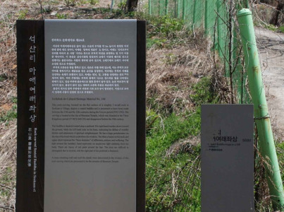 석산리 마애여래좌상은 순창 구미마을에서 섬진강을 건너 불암산 중턱 바위에 새겨진 불상이다. 이 바위의 높이는 약 3m 정도 되며, 불상의 높이는 2.6m로 성인 남성보다 좀 더 큰 체구를 가지고 있다. 전체적으로 신체에 비하여 얼굴이 큰 편이며 앉아있는 모습으로 조각되어 좌상이라 한다. 얼굴은 정사각형에 가까운 편으로 눈은 마모되어 분명치 않으나 가늘게 뜨고 있는 듯하며 큼직한 코, 두툼한 입술과 이마 선을 따라 붉은색의 칠이 선명하게 남아 있다. 신체는 얼굴에 비하여 작게 표현되었는데 어깨가 좁고 위축되어 있다. 오른쪽 어깨에는 아무것도 걸치지 않았으며 왼쪽 어깨에는 대의 자락이 걸쳐있다. 오른손은 결가부좌한 다리 아래로 내려가 있고, 왼손은 손바닥을 위로 하여 양 무릎 위에 살짝 올려놓았다. 제작 시기는 고려시대인 11~12세기경으로 추정된다. 2003년에는 가치를 인정받아 전라북도 문화유산 자료로 지정되었다. 주변에는 섬진강 외에 구암정, 용궐산자연휴양림 등이 있어 연계하여 관광할 수 있다.