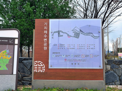 전주시 덕진구 여의동에 있으며 1934년에 만들어진 기지제는 베틀처럼 생긴 연못 같다고 하여 이름 붙여졌다. 수변 전망대, 체력 단련 시설 및 휴게 시설이 설치되어 있고, 생태 공원의 습지에는 갈대, 억새 숲을 조성하고, 아름다운 틀못다리와 정자 만성루도 설치되어 있다. 기지제 수변공원은 기지제 주변에 조성된 공원으로 피크닉 명소로 꼽힌다. 기지제 주변에 데크로 조성된 산책로를 걸으며 호수와 습지에서 살아가는 여러 생물을 만나고 연꽃과 억새, 갈대, 노을과 같은 자연을 만끽할 수 있는 도심 속의 휴식처로 사랑받고 있다. 데크길을 한 바퀴 도는데 소요되는 시간은 성인 걸음으로 약 1시간 정도 소요되며, 중간중간 쉬어갈 수 있는 그늘막 벤치도 있다. 산책 중에 습지에서 지저귀는 다양한 새소리를 들을 수 있고 수달 등 습지에 사는 여러 생명체를 만날 수 있다. 공원 내 약 460m 구간에 가우라베이비, 니포피아, 억새, 백합 등 개화기가 각기 다른 5종의 화초류 7,544본이 식재되어 있어 사계절의 즐거움을 느낄 수 있다. 또한, 밤에는 물에 반영되어 비친 아파트의 불빛과 고요한 호수의 모습이 어우러져 멋진 풍광을 이룬다. 기지제를 끼고 전망 좋은 카페나 음식점도 많다.