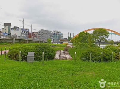 대천한내돌다리는 보령 시내 대천천 하류에 있었던 돌다리이자, 과거의 남포와 대천을 이어주는 중요한 교통로 역할을 했다. 세월이 흐르면서 물살에 쓸려 떠내려가거나 하천 제방공사를 하면서 파손되어 얼마 남지 않은 것을 1978년 수습하여 옮겨 두었다가, 1992년에 대천천 강변에 옮겨 일부 복원하면서 충청남도 유형문화유산으로 지정하였다. 거대한 화강암으로 만들었는데, 근처에 있는 왕대산의 돌을 깎아내어 뗏목으로 운반해 온 것으로 보인다. 다리의 몸체를 받치는 기둥은 거칠게 손질한 2∼3개의 돌을 쌓아 이루게 하여, 모두 6개의 기둥이 불규칙하게 배치되어 있다. 그 위로 넓적한 판돌을 걸쳐서 다리를 완성하였는데, 원래는 12칸 돌다리라 하나 적어도 22칸은 되었던 것으로 추측된다. 보령시에서는 해마다 향토문화축제가 열리는데 이때 12칸 돌다리밟기제가 열린다. 인근 관광지로는 보령중앙시장, 한내시장, 보령문화의전당 등이 있다.