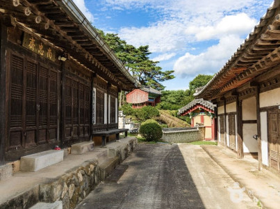 삼거리에 들어서면 담벼락을 채우고 있는 벽화가 눈에 띈다. 미소를 띠고 있는 부부가 그려진 벽화다. 머리는 동백나무이다. 그래서 기동 삼거리 벽화는 동백나무 파마머리 벽화라고도 불리고 있다. 담장 안에서 자라는 동백나무가 벽화와 어우러져 독특한 분위기를 연출하여 길을 걷다가 발걸음을 멈추게 된다. 벽화를 배경으로 사진을 남기기에도 좋다.