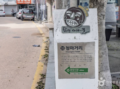 청마거리는 청마 유치환과 정운 이영도의 애틋한 러브스토리가 스민 곳으로 유명하다. 이곳 청마거리는 우리나라 대표적인 문학가인 청마 유치환 선생의 문학정신을 기리고 선생의 작품 활동 배경을 중심으로 한 일정 장소를 특성화하여 문학 애호가들의 탐방코스는 물론 우리 지역만이 갖는 문화시설로 가꾸어서 관광자원화하기 위하여 2001년 2월 청마거리로 지정되었다. 유치환 선생의 생가가 있었던 자리에 청마거리 표지판이 보여서 가보았더니, 표지판으로부터 우체국까지를 청마거리라고 지정해 놓았다. 유치환 선생의 유명한 연애 장소로 알려져 있는 곳이기도 하다.