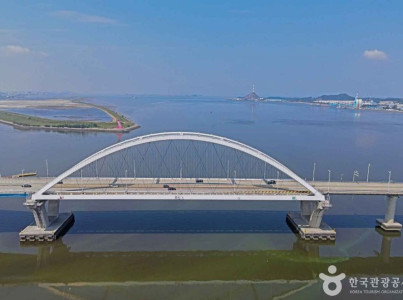 동백대교는 전북 군산시가지와 충남 서천 장항읍을 연결하는 길이 1,930m의 왕복 4차로 교량이다. 원래 군산과 장항은 금강 하구를 사이에 두고 가까운 거리에 있지만, 가장 가까운 교량이 금강하구둑이라 30분가량 우회하거나 도선장에서 선박을 이용해야 하는 불편함이 있었다. 이러한 불편함을 해소하기 위해 2008년에 동백대교를 착공하여 2018년에 개통하였다. 하여 이동시간이 5분으로 단축되었고, 아치교의 모양이 아름다워 지역의 랜드마크가 되었다. 이 다리를 주행하면서 양쪽으로 펼쳐지는 서해와 금강의 경관도 아름답다. 동백대교라는 이름은 군산시와 서천군의 군화가 모두 동백꽃이라는 점에 착안하여 명명되었다. 주변에는 군산월명공원, 해망굴, 군산수산물종합센터 등이 있어 연계하여 관광할 수 있다.