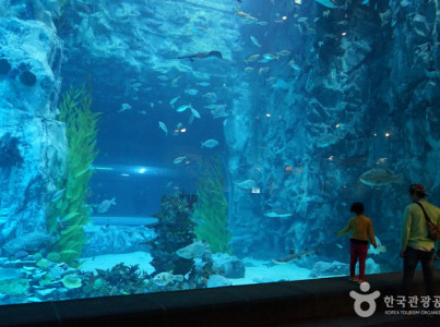 전 세계 5대양을 그대로 옮겨놓은 13개의 다양한 테마존에서 해양생물과의 특별한 만남을 가질 수 있다. 강에서 연안으로, 연안에서 바다로 생태계의 흐름을 따라 걸으며 자연의 경이로움을 경험할 수 있다. 25m 넓이의 국내 최대 서식의 수조로, 집이 되어 살아갈 해양생물을 위해 바다를 담은 수조를 설계했다. 또한 다양한 해양생물들이 더불어 사는 자연과 동일한 서식환경을 만들었으며, 국내 최고 수준의 생명유지장치를 통해 청정지역 바닷물을 그대로 구현하고 있다. 아쿠아리움에서는 국내 최다 14종의 체험 교육프로그램을 통해 해양생물과 더불어 사는 즐거움을 전하고 있다.