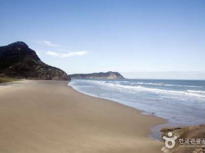 띠밭넘어해변은 신안 우이도에 자리한 해변이다. 우이도는 섬의 서쪽 양단에 돌출한 2개의 반도가 소의 귀 모양과 비슷하여 우이라고 이름이 붙여졌다. 호젓하게 야영을 즐기고 싶은 사람들에게 천혜의 야영지로 오랜 풍화작용으로 모래가 80m 정도 높이로 쌓이면서 만들어진 모래산과 수려한 노송은 우리나라에서 보기 드문 광경을 선물해 준다. 하지만 외지 사람이 잘 찾지 않아 관광객을 위한 편의시설이 부족한 편이지만 오히려 이 때문에 자연 그대로의 모습으로 남아있다. 봄에는 동백꽃이 만발하고 후박나무의 천리향이 섬 전체에 은은하게 퍼지는 꽃섬으로, 여름에는 무공해 피서지로, 가을이면 단풍 섬으로 옷을 갈아입는 자연경관 덕분에 사진을 찍기 위한 사진작가들이 많이 찾는 촬영 장소로 유명하다.