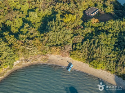 여자만에 있는 섬으로, 행정구역상으로는 전라남도 고흥군 과역면 연등리에 속해 있다. 면적은 0.17㎢, 해안선 길이는 1.5㎞이다. 섬의 지형이 마치 덕을 베푸는 자라처럼 생겼다고 하여 미덕도라는 이름이 붙었다. 섬의 북쪽 해안가에 파도로 침식된 지붕형의 천정이 있는데 이곳에서 떨어지는 물방울을 맞고 병이 치료되었다는 말이 있다. 여자만이 속해 있는 다도해국립공원은 신안군에서 진도군, 완도군, 고흥군을 거쳐 여수시까지 이어지는 1,596여 개의 섬이 있으며 바닷가와 인접한 산, 그리고 바다 위의 섬 하나하나가 아름다운 경관을 자랑한다.