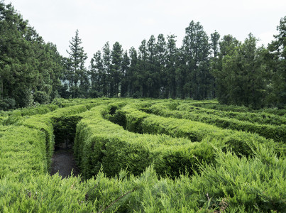중문 미로파크는 사계절 푸르른 랠란디나무의 미로 속에서 길을 찾는 즐거움을 체험할 수 있는 공간으로 감귤 체험, 동물 친구들, 유채꽃밭과 제주의 신화와 역사, 황금사자의 이야기가 있는 곳이다. 이곳의 미로를 구성하는 나무는 랠란디 사이프러스(X cupressocyparis leylandii)로 흔히 랠란디라 칭한다. 푸르른 랠란디 나무의 싱그러운 향기는 심신 안정의 효과가 있다. 미로의 끝에는 황금사자 형상이 있다. 미로파크가 있는 예래동[猊來]은 ’사자가 온다’는 뜻으로 마을 이름의 유래가 전해진다. 서귀포 앞바다의 호랑이를 닮은 범섬이 예래동을 바라보고 있다. 예로부터 예래동은 범섬인 호랑이의 저주를 받아 나쁜 일이 그치지 않았다. 우연히 한 고승이 지나가다가 해 뜨는 동녘 바다에 우뚝 솟은 섬이 범 형상이어서 마을에 재앙을 가져오기 때문에 이 마을 뒤편 서북쪽에 있는 군산이 사자형이므로 호랑이와 대항할 사자가 온다는 뜻으로 예래라 지어주었으며, 그 뒤로 마을은 평온을 되찾았다고 한다.
