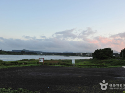 제주시 구좌읍 하도리에 있는 철새도래지로 바다와 인접하고 수심은 1m 정도로 영양분이 풍부한 먹잇감과 습지식물이 많아 철새들이 월동하기에 최적의 지역으로 알려진 곳이다. 천연기념물로 지정돼 있고 세계적으로 1,600여 마리 정도만 남아있다는 저어새를 비롯해 천연기념물인 고니, 매, 황조롱이 등과 환경부 멸종위기야생동물인 물수리 등이 관찰되고 있다. 매년 30종에 이르는 철새들이 날아온다. 하도리 지미봉 기슭은 해안에 하굿둑을 축조해 저수지를 만들어 먹이가 풍부하고 둥지를 틀 수 있는 곳이 많이 있다. 망원경이 설치되어 있는 탐조대에서는 철새들의 모습을 관찰할 수 있다. 특히 이 지역은 둑을 축조하며 만든 다리의 경치가 일품이라 드라이브 코스로도 주목받고 있다.