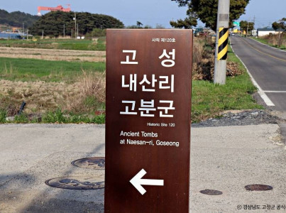 빛바랜 안내판이 잘 보이지도 않는 글자로 사람들을 반겨주는 고성 내산리 고분군은 고성군 내산면 성산을 배경으로 낮은 언덕과 평지에 모여있는 가야무덤이다. 100여 기의 무덤이 있었다고 전해지나 현재 반 정도만 남아있다. 봉토의 지름은 10m~15m 안팎으로 겉모습은 일반적인 무덤과 별 차이가 없다. 무덤의 내부는 구덩이식 돌널무덤(수혈식 석곽묘)으로 가야지역의 일반적 형식을 따르고 있다. 경질토기와 철기류를 비롯해 회청색 경질토기 조각이 발견되었다. 지리상으로 고성만의 출입구에 해당하는 지역으로 고분군의 주인들은 고자국(古自國)과 소가야(小伽倻)의 관문을 지키는 역할을 했던 것으로 추측된다.