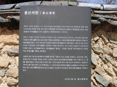밀양 용산서원은 조선 선조 시기에 나주와 광주목사, 그리고 영흥과 밀양의 도호부사를 지낸 경북 성주 출신의 이계 김우홍 선생의 충절과 애민사상을 기리고 제향 하기 위해 세워진 서원이다. 이 서원은 원래 1950년경 의성김씨 이계공파 소유의 토지 위에 창건된 서당에서 비롯되었으며, 후손들과 고을 백성 자제들에게 사설 교육을 제공하는 교육기관으로서 중요한 역할을 했다. 그러나 개화기를 맞아 서당은 점차 그 기능을 잃고 폐당되었다. 이후 용산서원은 의성김씨 이계공파 문중의 제사를 지내는 장소로 바뀌었고 마을 주민들이 모여 중요한 대소사를 결정하는 회의 장소로도 활용되었다.