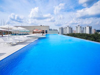 청량한 물소리와 하늘빛 자연을 한눈에 품은 아쿠아 필드는 감각 있는 사람들의 오감만족 힐링 클럽이다. 하늘과 맞닿은 인피니티 풀에서 느긋이 즐기고 신비로운 오로라부터 구름 위의 휴식까지 8가지 테마의 찜질 스파를 경험하는 곳 들어서는 공간마다 색다른 휴식이 기다리는 아쿠아 필드에서 삶의 진짜 멋과 여유를 누릴 수 있다.