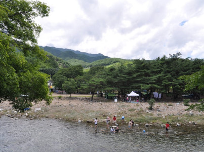 송정숲은 삼장초등학교 건너편에 있는 자연 발생유원지다. 땅이 모래로 이루어진 송정숲은 배수가 잘되기 때문에 캠핑 장소로 좋다. 아울러 덕천강 물길을 막아 놓은 보가 있어 아이들이 물놀이를 하기 적합하다. 나무다리 건너편의 국도변에는 주차장, 민박집, 모텔, 식당, 상점 등의 다양한 편의시설이 성업 중이다.