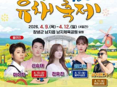 창녕군 남지읍 낙동강 유채단지는 전국 단일면적으로 최대 규모인 110ha(33만여 평)로, 낙동강의 수려한 경관과 어우러져 한 폭의 풍경화를 연상케 하는 대표 봄 관광지이다. 창녕낙동강유채축제는 2006년 제1회를 시작으로, 유채꽃의 아름다움을 전국에 알리고 관광객과 지역민이 함께 어우러지는 창녕군 대표축제로 자리매김하였다. 축제 기간에는 개막식 공연을 비롯해 지역 문화공연, 유채꽃라디엔티어링, 전시 및 체험행사 등 다채로운 프로그램이 운영되며, 방문객들에게 풍성한 볼거리와 즐길 거리를 제공한다. 특히 드넓은 유채꽃밭과 낙동강이 어우러진 경관은 봄의 정취를 만끽할 수 있는 힐링 공간으로 많은 관광객의 발길을 이끌고 있다.