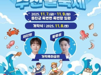 죽변항 수산물축제는 울진군 죽변항 일원에서 11월 7일부터 11월 9일까지 개최되는 지역 대표 축제이다. 울진의 신선한 수산물을 주제로 다양한 체험과 공연, 경매 프로그램이 진행되는 축제이다. 주요 프로그램으로는 맨손 활어잡기, 수산물 해체쇼, 물회 퍼포먼스, 바다공방 체험 등이 있으며, 개막축하공연에는 이찬원과 황윤성이 출연한다. 축제 기간 동안 울진의 바다를 배경으로 한 어선 퍼레이드와 수산물 즉석경매가 진행되어 풍성한 볼거리와 먹거리를 제공한다. 또한 희망울진특별전, 울진군 화합의 거리, 울진바다거리 등 다양한 테마 부스가 운영되어 지역 수산물과 특산품을 한자리에서 만날 수 있다. 본 축제는 지역 어민과 관광객이 함께 어우러지는 화합의 장으로, 울진 수산업의 우수성과 지역경제 활성화를 목표로 하고 있다.
