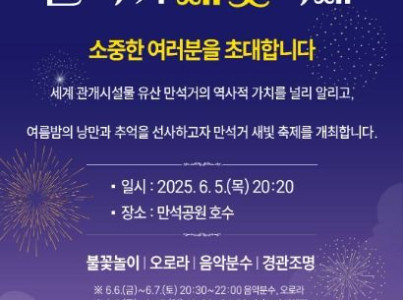 만석거 새빛축제는 만석거의 수려한 경관을 활용한 축제 개최를 통해 세계관개시설물유산 만석거의 역사적 가치를 널리 알리고, 생활 속 야간의 여가를 즐기는 야간관광 활성화를 통해 밤이 더 즐거운 야간관광 도시를 만들고자 2024년에 이어 2번째로 개최하는 축제이다.