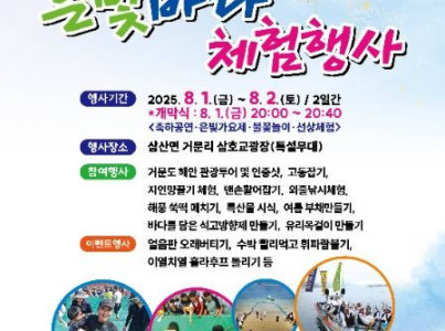 빼어난 풍광과 산해진미의 매력에 푹 빠지는 곳, 거문도에서 제23회 거문도백도은빛바다체험행사가 개최된다. 천혜의 항구가 펼쳐지는 이곳에서 거문도 해안투어, 지인망 끌기, 맨손활어잡기 등 가족이 함께 즐길 수 있는 체험행사가 가득하다. 갈치, 고등어 등 싱싱한 해산물 시식과 거문도 해풍쑥 체험도 가능한 이번 행사는 오는 8월 1일 ~ 2일까지 삼산면 거문리 삼호교 물양장 일원에서 개최된다.