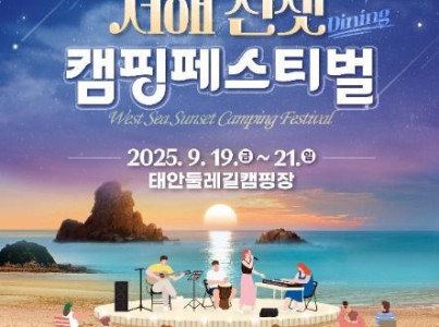 가을 서해 바다의 노을과 별빛이 어우러지는 태안에서 ‘서해 선셋 캠핑 페스티벌’이 개최된다. 이번 축제는 2025년 9월 19일부터 21일까지 3일간 태안 둘레길캠핑장에서 진행되는 행사이다. 축제는 친환경 캠핑을 주제로 하며 No Waste Clean Zone 운영을 통해 쓰레기 없는 캠핑을 실천하는 자리를 마련한다. 참가자는 친환경 캠핑 실천 공모전과 캠핑 브랜드 전시, 이벤트 등을 통해 자연 보존의 가치를 체험할 수 있다. 2박 3일 캠핑 참여자에게는 친환경 웰컴키트와 태안 로컬푸드 꾸러미가 제공된다. 주요 프로그램은 서해 노을을 배경으로 한 선셋 다이닝, 친환경 점화 낙화 체험, 로컬푸드 요리대회, 별자리 강연 및 관측, 공연과 버스킹 등으로 구성된다. 또한 가족 단위 참가자가 함께 즐길 수 있는 다양한 체험과 이벤트가 마련된다. 이 축제는 자연 보호와 지역 문화 체험을 동시에 경험할 수 있는 종합적인 캠핑 행사이다.