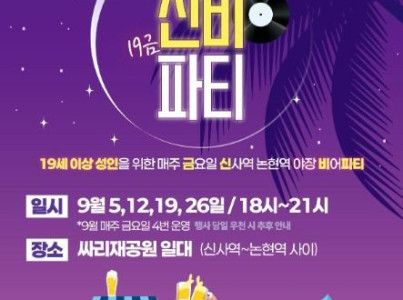 19금 신비파티 in 서초는 서초구청 일자리경제과에서 잠원동 상권살리기 사업의 일환으로 진행된 축제이다. 9월 매주 금요일 신사역 및 싸리재공원 일대에서 저녁6~9시에 야장이 진행된다. 다른 맥주축제와 다르게 성인인증 및 상권에서 안주를 구매해오면 맥주를 무제한으로 제공해준다.