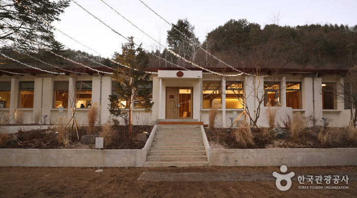 1969년 개교해 15년 동안 아이들의 배움터이자 놀이터였던 지암국교인 이곳은 여타 다른 분교와 마찬가지로 학생 수가 점점 줄어들어 1982년에 결국 폐교되었다. 그 후 오랜 시간 자연 속에서 그대로 방치되어 있기에는 너무나 아름다운 이 공간에 비플러스엠만의 색을 입히고 새로운 숨결을 불어넣어 재탄생시켰다. 순박한 아이들의 이야기와 자연이 주는 아름다움을 그대로 안고 모든 이들이 편히 쉬었다 갈 수 있는 곳이길 바란다.