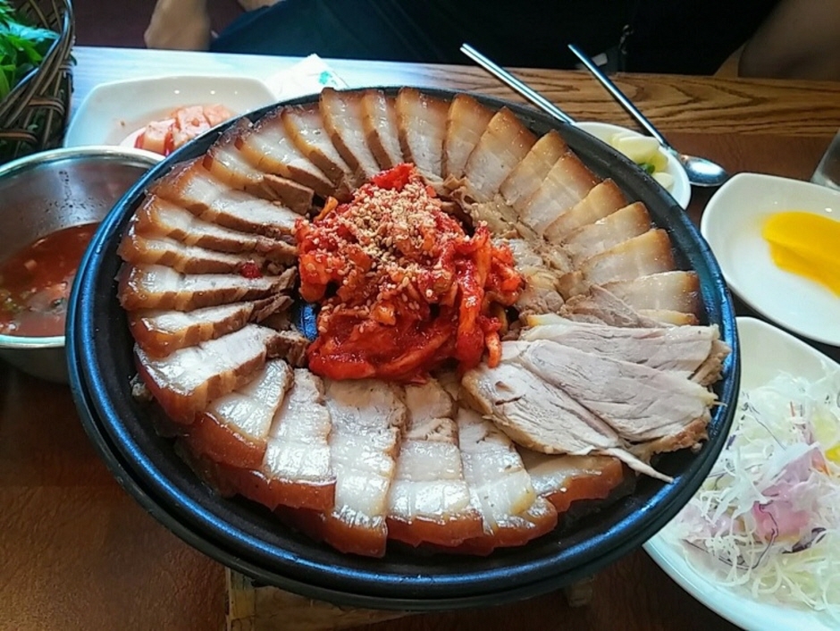 홍두깨칼국수는 온양전통시장 내부에 위치한 가성비 좋은 칼국수 전문점이다. 손칼국수, 잔치국수, 손수제비, 만두 등 다양한 메뉴를 제공하며, 특히 손칼국수와 만두가 인기이다. 멸치와 무 그리고 몇 가지 약재를 넣고 10시간 이상 우려낸 육수에 국수를 넣고 약한 불에 은근히 끓여내 깔끔하고 깊은 맛을 낸다. 국물은 멸치 육수를 사용해 진하고 깊은 맛이 특징이며, 면발은 쫄깃하고 양도 푸짐하다. 가격 대비 만족도가 높아 혼밥이나 가족 단위 방문객에게 모두 적합하다.
