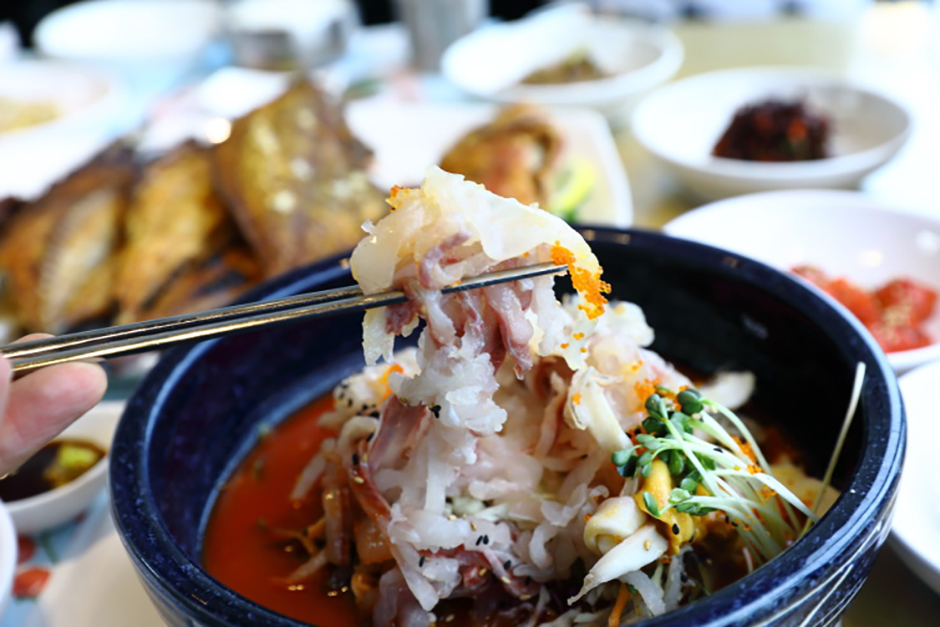 동해역에서 10분 거리, 쏠비치에서 해변을 따라 걸어서 5분 정도 거리에 있다. 간장게장 정식과 생선구이 정식이 대표 메뉴로, 간장게장 정식에는 생선구이가 포함되어 있어 두 가지 모두 맛보고 싶을 때 선택하면 좋은 메뉴다. 광어, 우럭을 비롯한 도미, 농어 등의 생선회와 뼈째회(세꼬시), 물회, 대구탕, 회덮밥도 판매한다. 홈페이지에서 간장게장과 생선구이는 물론 가자미식해, 명란젓, 꼴뚜기젓, 가리 속젓 등의 숙성 젓갈도 구매할 수 있다.
