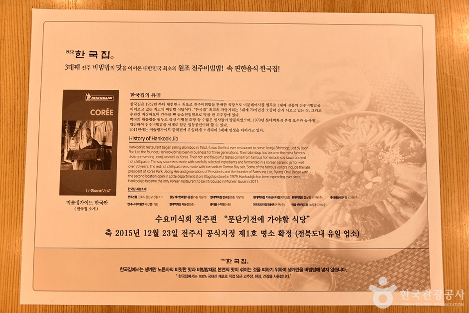 1952년 개업해 3대째 전통을 이어가고 있는 전주비빔밥 전문점이다. 한옥을 식당으로 개조해 아름다운 마당도 보유하고 있다. 전주한옥마을, 경기전 등 전주의 주요 관광지와도 가까워 뛰어난 입지를 자랑한다.
