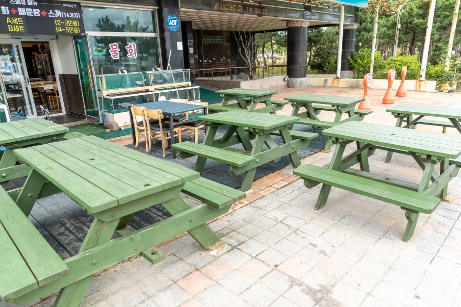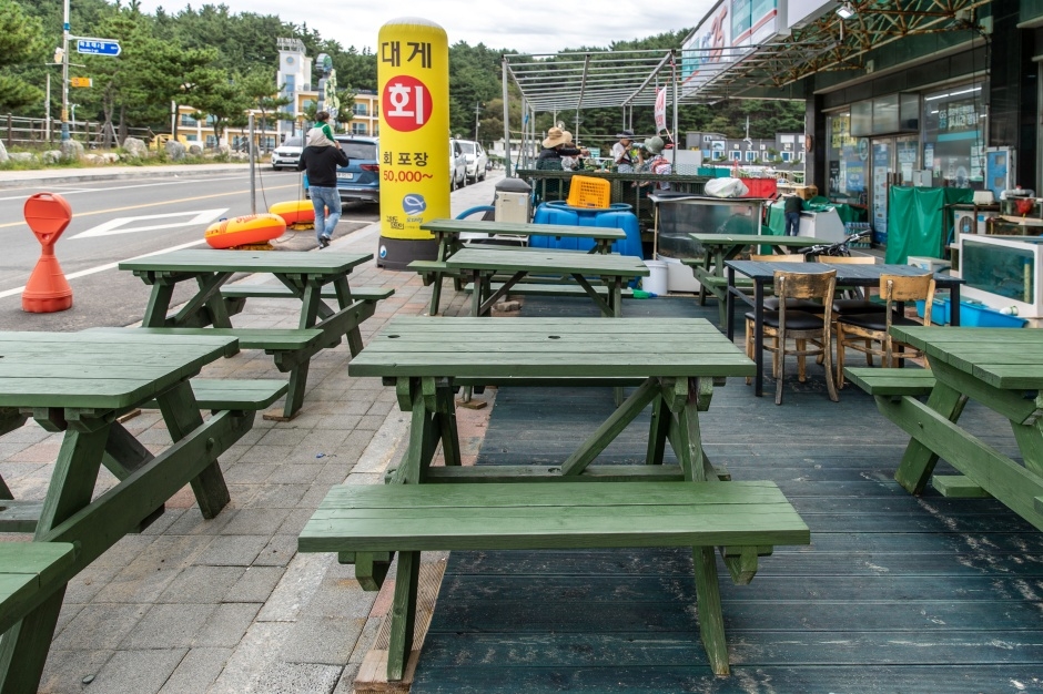 양양 하조대 해변 바로 앞에 있어 바다와 함께 식사를 즐기실 수 있는 반려견 동반 가능한 횟집 오대양수산입니다.
