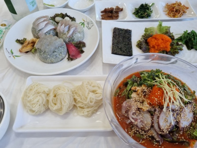 속초에서 곁들이 안주(스끼다시) 많기로 소문난 집 스끼다시천국! 동명항에 있습니다물회, 매운탕, 비단멍게, 해삼, 전복, 문어숙회, 꽁치, 열기, 가리비, 오징어순대 등등 다양한 최고급 곁들이 안주(스끼다시)를 무한으로 제공하며 속초 뿐만 아닌 강원도 먹거리를 한자리에서 만나 보실 수 있습니다.오픈형 주방과 사장님이 직접 손질하는 믿고 먹을 수 있는 다양한 먹거리손님들의 편의를 위한 차량 픽업 서비스를 제공하고 있습니다. ^^반려견과 함께 오셔서 즐거운 식사하시고 가세요!