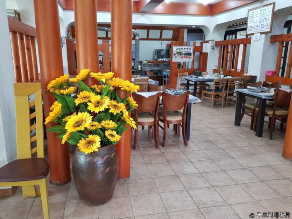 경기도 파주시 두포리 임진강 근처에 있는 매운탕 전문점이다. 신선한 민물고기와 싱싱한 미나리, 쫄깃한 수제비가 조화를 이룬 매운탕, 탱글탱글한 장어로 만들어내는 장어구이를 맛볼 수 있다. 매운탕의 얼큰하고 담백한 맛이 잘 어울린다. 실내좌석은 물론, 야외 테이블 좌석도 마련되어 있다. 주말에는 웨이팅 하는 경우가 많아 미리 예약하길 추천한다. 율곡습지공원과 가깝고, 주변에 캠핑장이 많다.