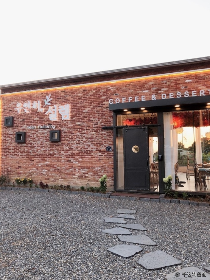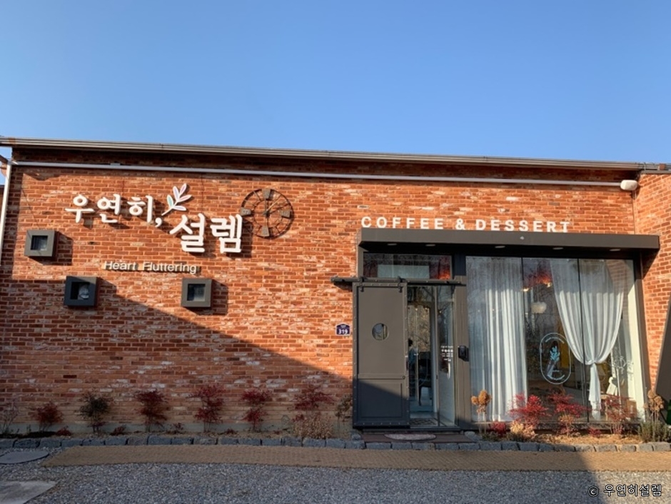 우연히설렘 카페는 경기도 파주시 송촌동에 있는 디저트 감성 카페이다. 임진강이 내려다 보여서 아름다운 경치를 즐기기에 제격이다. 또한, 통유리창 밖으로 보이는 초록뷰가 마음을 편안하게 해 주며, 비나 눈이 오는 날에는 운치있고, 햇빛이 좋은 날에는 자연광으로 해사한 카페를 즐길 수 있다. 이곳만의 시그니처 크림커피들과 디저트를 함께 즐기면 그 맛이 더욱 빛을 발한다. 아기자기한 소품을 이용해서 실내를 잘 꾸며놓아 사진 찍기에도 좋으며, 좌석은 실내와 실외 취향에 따라 모두 이용할 수 있다. 야외테라스에 한해 반려동물도 함께할 수 있다.