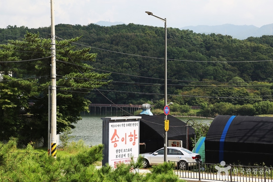 백운호수 부근에 위치한 송이향한정식은 1984년 개업한 이래 오랫동안 전통의 맛을 지켜온 한정식 전문점이다. 청계산과 백운호수가 한눈에 바라보이는 곳에 있어 경치가 좋고 상견례, 돌, 백일잔치와 같은 특별한 날에 가족, 친지, 연인 등 소중한 사람들과 함께하는 식사 장소로 유명한 곳이다. 식사 장소는 좌식, 입식, 단체 및 연회석 등 다양하게 보유하고 있어 식사 인원 및 목적에 맞게 선택할 수 있으며, 특히 프라이빗한 룸도 마련되어 있어 가족이나 모임 참석자들끼리 맛있는 음식을 먹으며 도란도란 이야기 나누기 좋다. 평촌IC, 4호선 인덕원역에서 차량으로 약 10분 소요되며, 역에서 한 번에 오는 버스가 있다. 백운호수와 롯데프리미엄아울렛 타임빌라스, 바라산자연휴양림이 인접해 있고, 인근에 청계산, 관악산, 광교산, 안양예술공원, 서울랜드, 서울대공원, 국립현대미술관, 국립과천과학관, 렛츠런파크 서울 등이 있다.