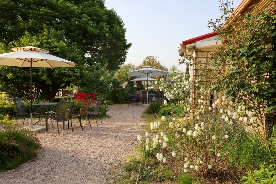 이곳은 현 사장님의 증조할아버지가 지으신 한옥을 개조하여 오픈한 카페이다. 카페를 중심으로 정원을 조성하여 외부에서도 여유롭고 분위기 있게 티타임을 즐길 수 있다. 사장님의 아버지가 손수 쌓으신 돌담이 정원을 둘러싸며 멋스러움을 풍기고 카페 앞에는 사장님이 태어나 부모님과 처음 식목일에 심은 느티나무가 자라 지금의 그늘이 되어 많은 손님들에게 시원한 쉼터가 되어주고 있다. 그늘 아래 앉아 보이는 강화도의 넓은 논은 조선 후기 강화도에 간척사업을 하면서 만들어진 평야로, 그 옛날 바다였고 나루터였던 지금의 자리를 상상하며 사색을 즐기기에 좋다.