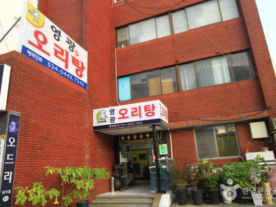 영광오리탕은 광주 유동에 위치한 오리 요리 전문점이다. 들깨가루와 야채 등을 넣어 뚝배기에 끓인 오리탕이 대표적인 메뉴이다. 들깨가루를 넣은 국물에 된장으로 간을 맞춰 한번 끓인 후 다시 나물, 미나리, 토란대 등을 넣어 끓인 맛이 별미이다. 오리탕은 한 마리와 반마리로 골라 먹을 수 있으며 약오리는 4시간 전에 예약 필수이다.