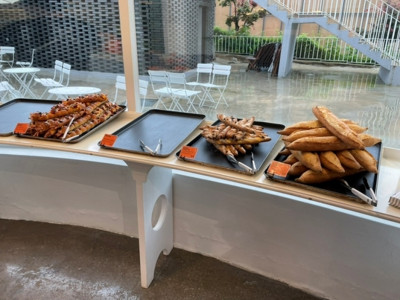 반려견을 동반하여 바비큐 식사를 즐길 수 있으며, 2층에는 반려견 놀이터가 조성되어 있어 식사 후 반려견과 함께 운동하며 즐길 수 있다. 1층에서 반려견 간식을 구매할 수 있으며, 좌석이 가림막으로 구분되어 있어 옆 좌석과 거리 유지가 편하며 칸막이 안에 반려견을 위한 배변 패드도 깔려 있어 편리성을 제공하고 있다.