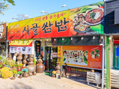 시골쌈밥은 경상북도 경주시 황남동에 위치하고 있다. 깔끔한 외관과 예스러운 분위기를 연출하는 인테리어가 눈에 띈다. 대표 메뉴는 불고기쌈밥이며, 시골쌈밥도 인기가 많다. 이 밖에 황토우렁이쌈밥, 순두부정식, 된장찌개정식, 돈가스, 갈비탕 등이 준비되어 있다. 오전 일찍 영업을 시작하기 때문에 여행길에 아침 식사를 하기 좋다.
