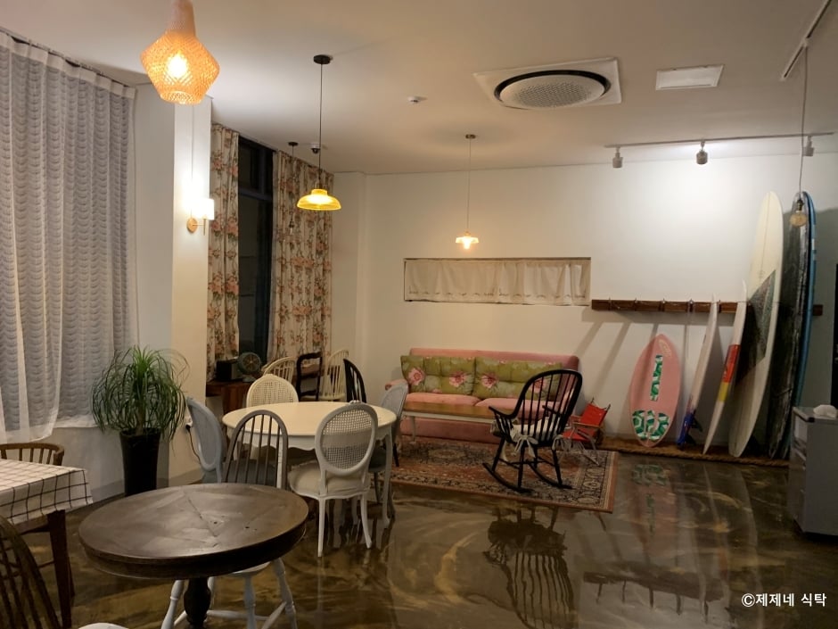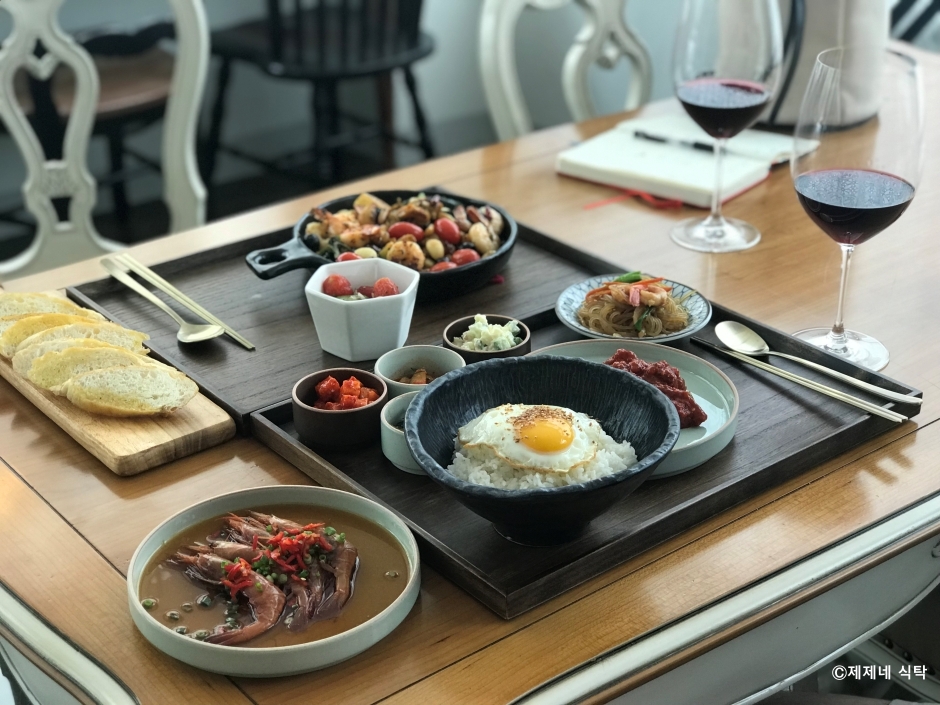 제제네식탁은 강원도 속초시 조양동에 있는 가정식 집밥을 하는 식당이다. 속초항과 묵호항에서 들여오는 홍새우로 양념 새우장, 간장새우장을 담그고 백 골뱅이로는 감바스를 만들기도 하고 삼겹살과 두부를 이용해 덮밥을 만든다. 밑반찬으로 김, 부침개, 호박볶음, 김치 등이 나오고 덮밥 위에는 달걀프라이를 얹어 준다. 모두 개인 쟁반에 반찬도 일 인분씩 차려 내줘 나만의 한 상을 받을 수 있는 식당이다. 카페와 같은 분위기의 식당에서 수제 에이드를 즐기거나 저녁에는 하우스 와인과 곁들여 식사할 수도 있다. 주차는 매장 앞에 가능하지만, 주변 도로에 적당히 할 수도 있다.