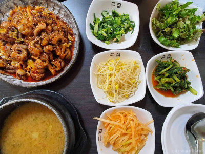 그집은 양촌역 1번 출구에서 멀지 않은 김포 구래동 맛집 거리에 있는 주꾸미볶음 전문점이다. 대표 메뉴인 주꾸미볶음은 불향 나는 매운맛과 중간 맛 중에 선택할 수 있고 식사도 보리밥이나 쌀밥 중 하나를 선택할 수 있다. 그 밖에 황태와 더덕, 묵무침, 새우튀김 등 다른 메뉴도 준비되어 있다. 밑반찬으로 제공되는 열무김치, 된장 나물, 콩나물무침, 무채 등은 셀프로 자유롭게 가져다 먹을 수 있으며 주꾸미볶음에 비벼 먹어도 좋다. 넓은 주차장과 흡연시설을 갖추고 있으며 야외테이블에서 자연과 더불어 식사할 수도 있다. ※반려동물 동반 불가(단, 안내견은 가능, 야외테이블에선 소형견 가능)