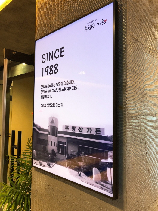 우리 땅에서 자란 재료들을 활용하여 남녀노소 누구나 좋아하는 정갈한 맛을 낸다. 청결한 시설과 좋은 재료를 고집하며, 대를 이어 전통의 맛을 이어간다는 자부심이 있다. 명품 한우 생갈비, 명품 한우 양념갈비, 전통식 한우 불고기, 프리미엄 양념 돼지갈비, 생삼겹살 등 청송의 자연경관과 함께 최상의 서비스와 최고의 맛을 느낄 수 있는 곳이다.