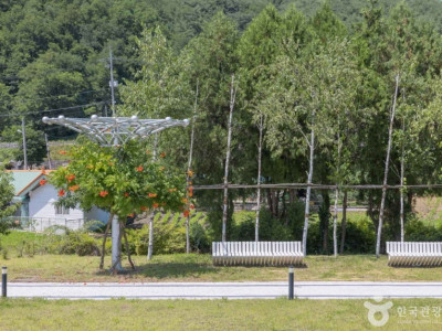 나전역은 오랜 시간 잊힌 기차역이었다. 1969년에 문을 열어 석탄사업이 활황이던 시절에 가장 번성했다. 그러다 1993년에 이르러 간이역이 됐고 2011년에 여객 취급마저 멈춰 폐역 직전까지 갔다. 2015년 의자와 난로 등을 설치하며 옛 역의 모습을 복원했지만 크게 관심을 끌지 못했다. 나전역의 부활을 이끈 건 카페다. 나전역은 우리나라 1호 간이역 카페다. 역 건물을 카페로 개조하며 정선의 새로운 명소로 떠올랐다. 기차를 기다리던 대합실은 손님들이 커피를 마시며 쉴 수 있는 장소로 변신했다. 기차표를 사듯 커피를 주문해 마신다. 옛 간이역의 긴 의자도 그대로다. 시간표 자리에 붙어 있는 메뉴판도 흥미롭다. 나전역의 특별함은 기차역의 느낌을 살린 레트로 분위기에만 있지 않다. 정선의 로컬푸드 곤드레를 활용한 메뉴 역시 나전역 카페를 알린 비결이다. 대표 음료는 나전역크림커피로 쌉싸름한 곤드레 나물 향과 달콤한 크림 커피의 조화가 절묘하다. 곤드레아란치니도 나전역 카페에서만 맛볼 수 있는 디저트 메뉴다. 공원은 계곡수체험장이 ‘S’자로 가로지른다. 그 주변으로 분수와 정자, 파고라 등이 자리해 계곡수에 발을 담그며 잠시 쉬어갈 수 있다.