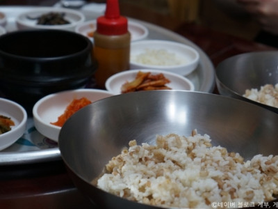 무늬만 레트로가 아닌 오리지널, 옛 정취가 그대로 살아 있는 번영수퍼는 보리밥 맛집으로 유명한 정선 시골의 슈퍼 겸 식당이다. 인상 좋은 노부부가 운영하는 작은 식당으로, 둥근 쟁반에 가득 나오는 보리밥으로 유명하다. 보리밥은 먹기 쉽게 쌀과 보리가 반반 섞어서 지어 나오고, 갖가지 나물 반찬과 강된장, 두부조림이 나온다. 인심 좋은 노부부는 주문한 것보다 한 그릇의 보리밥을 항상 더 주신다. 시골 인심이 정겹고 반갑다. 메밀면으로 뜨끈하게 끓여 내는 콧등치기 국수나, 정선식의 만둣국도 별미이다.