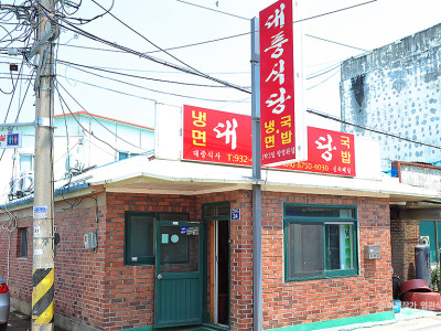 교동 면사무소가 있는 대룡리는 교동도의 중심지로 KBS 에 소개된 이후 외지인들에게 알려지기 시작했다. 교동도는 원래 민통선에 가까운 지역이라 그동안 발전과는 거리가 먼 낙후된 동네로 ‘시간이 멈춘 듯한 섬’으로 소개되곤 했다. 작년에 교동대교가 개통된 이후에는 주말마다 관광객들이 찾아오는 섬이 되었지만, 소재지에 위치한 대룡시장은 여전히 추억 속의 70~80년대 시장 분위기를 고스란히 간직하고 있다. 교동도에서 가장 오래된 50여 년의 역사를 지녔다는 대풍식당 골목 역시 옛 추억 속으로 거슬러 올라가게 하는 고적한 분위기다. 현재는 며느리가 30년 가까이 물려받아 운영하는 대풍식당의 메뉴는 단 두 가지, 국밥과 물냉면이다. 겨울에는 만둣국도 팔긴 한다. 순대와 돼지 창자 등 부속물을 넣어 끓인 국밥은 따로국밥 형태로 나오고 기본 간이 되어 있는 심심한 국물에 새우젓으로 간을 맞춰 먹는다. 야채로만 육수를 내는 냉면은 시어머니의 고향인 황해도 스타일이어서 교동도의 실향민들이 고향을 그리워하며 즐겨 먹는 음식이다.