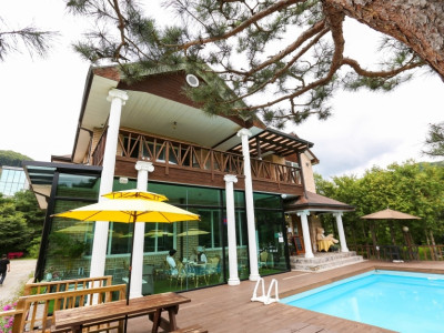 홍천강 뷰가 보이는 테라스의 아침은 펜션과 카페를 함께 운영하고 있다. 반려동물 동반이 가능하며, 카페 이용 시 보드게임과 에세이소설, 반려견 운동장을 이용할 수 있다. 홍천 여행할 때 반려동물과 소중한 추억을 쌓을 수 있는 공간이다.
