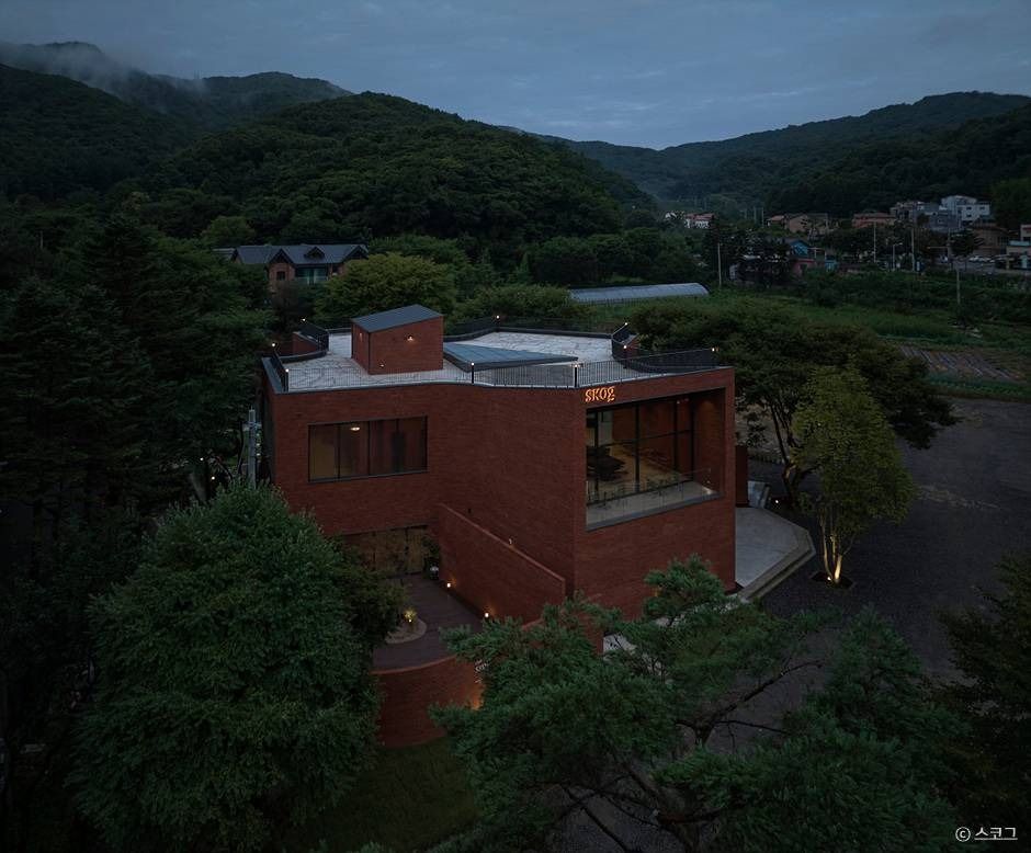 노르웨이어로 ‘숲’을 의미하는 스코그는 이름에 어울리게 남한산 한가운데 자리하고 있다. 사방으로 뚫린 시원한 창으로 아름다운 남한산 숲의 경관을 감상할 수 있다. 건물의 외부와 내부는 숲의 초록색과는 대비되게 빨간 벽돌로 이루어져 있어 독특한 모습을 마주할 수 있다.