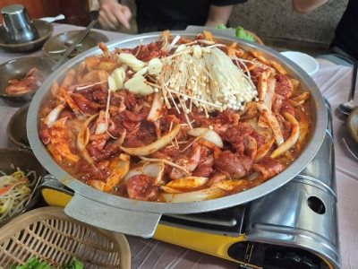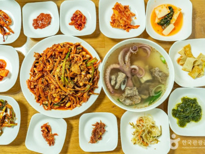불국사 바로 앞에 자리한 부산식당 경주불국사본점은 오랜 역사와 전통을 자랑하는 식당이다. 불국사를 찾는 사람들에게 든든하고 맛있는 한 끼를 제공하는 곳으로 알려져 있다. 이곳의 대표메뉴는 차돌박이된장찌개정식이다. 뚝배기에 끓여 나오는 된장찌개는 구수한 된장베이스에 차돌박이가 듬뿍 들어가 깊고 진한 맛을 자랑한다. 고소한 차돌박이 기름이 된장과 어우러져 한층 더 풍부한 감칠맛을 내며, 두부, 호박, 양파 등 다양한 채소가 푸짐하게 들어가 있어 든든한 한 끼 식사로 손색이 없다. 남녀노소 누구나 좋아하는 떡갈비는 육즙 가득한 부드러운 식감이 일품이다. 양념이 고루 배어 달콤하면서도 짭짤한 맛이다. 아이들과 함께 방문하는 가족 단위 손님들에게 인기가 많으며, 된장찌개와 함께 곁들여 먹으면 더욱 풍성한 식사를 즐길 수 있다. 이 외에도 돌솥비빔밥, 산채비빔밥, 불고기전골 등 다양한 한식 메뉴들이 준비되어 있어 선택의 폭이 넓다. 밑반찬 또한 정갈하고 깔끔하게 제공된다.