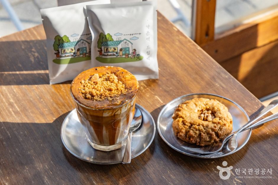 카페 가은역에서는 문경사과로 만든 음료와 디저트를 맛볼 수 있다. 사과쿠키크림라떼, 사과모히또, 사과&레몬에이드, 사과라떼, 사과차, 사과주스, 사과콩포트, 사과버터 등 이곳 가은역에서만 판매하는 메뉴들이다.