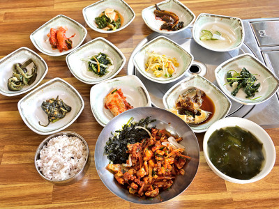 을왕리 펜션 마을에 있는 낙지요리 전문 식당이다. 식당 내부 커다란 수족관에 낙지가 가득 들어 있는 싱싱한 산 낙지를 맛볼 수 있는 곳이다. 낙지요리는 낙지전골로 매운맛과 맑은 맛의 빨간 거와 하얀 거로 메뉴 이름을 만들었다. 양념장에 팽이버섯과 부추를 듬뿍 넣어 국물이 우러나오면 산낙지를 넣고 끓인다. 전골을 다 먹고 난 후에 먹는 볶음밥도 인기다.