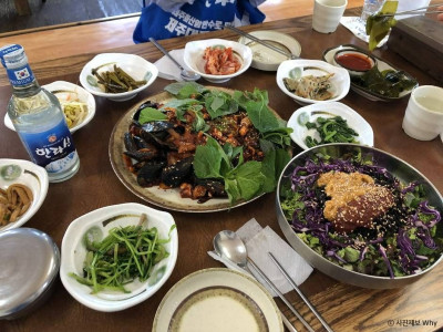 밀양 다강은 비빔밥과 전으로 유명한 곳으로, 시인인 주인장의 손글씨 시가 곳곳에 있어 작은 갤러리 같은 분위기를 준다. 대표 비빔밥은 옹기에 밥과 여러 채소를 담고 고추장을 더해 투박하면서도 정갈한 맛을 낸다. 부추전과 감자전은 주문 즉시 부쳐 바삭하고 고소해 인기다. 주인장이 직접 재배한 재료로 만든 대추차와 오미자차 같은 전통차도 이곳에서만 맛볼 수 있다. 계절마다 달라지는 정원도 아름다워 음식, 차, 분위기 모두 만족도가 높은 곳이다. 여유롭게 머물며 식사와 차를 즐기기 좋은 공간이라 여행객과 지역 주민 모두 꾸준히 찾는다.